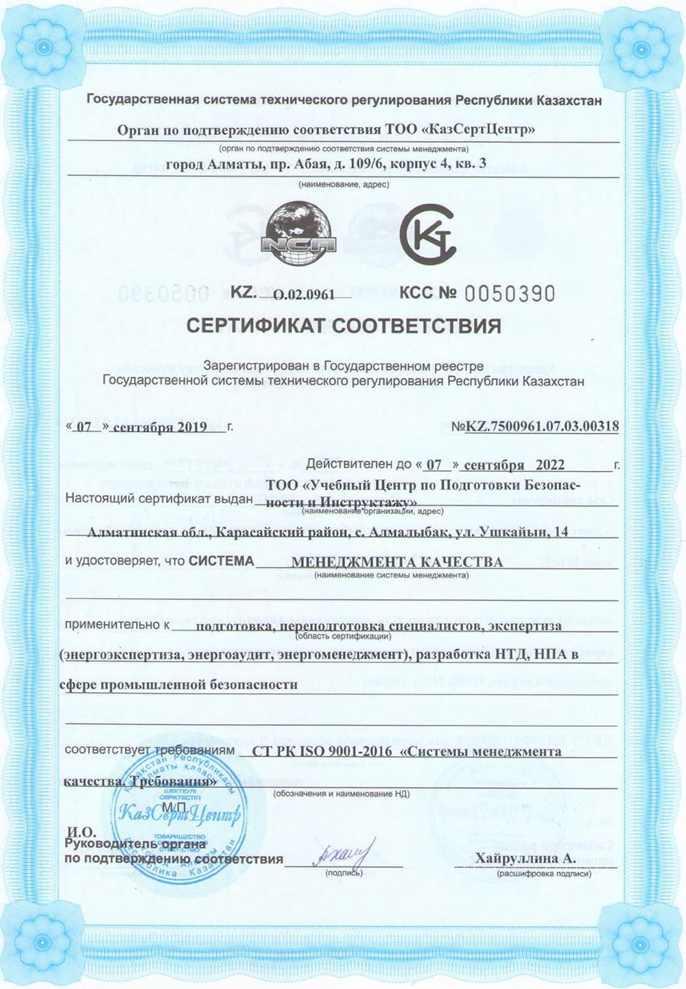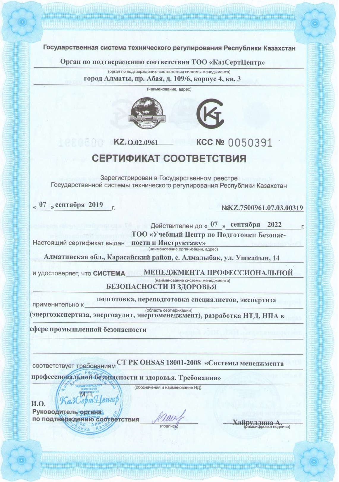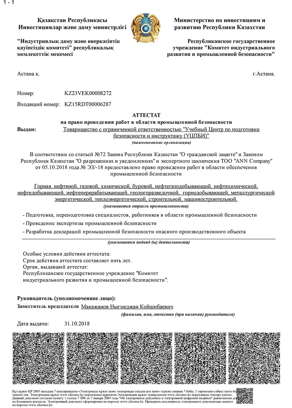 ТОО «УЦПБИ» является специализированной организацией в области оказания услуг по проведению экспертизы промышленной безопасности, организации курсов по подготовке, переподготовке специалистов, работников в области промышленной безопасности, разработке деклараций промышленной безопасности.